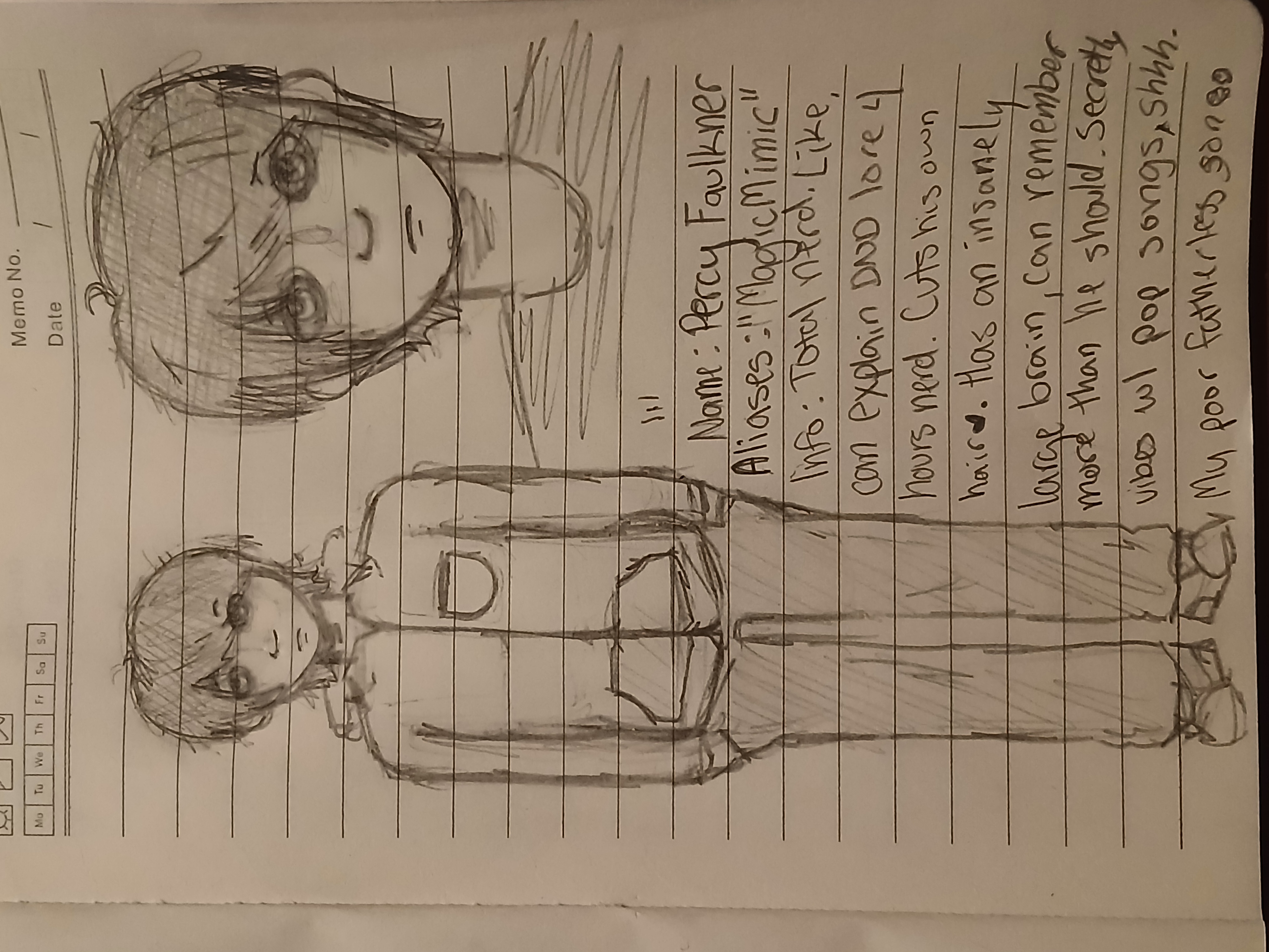 Seb is neurodivergent so he really likes the bands that he listens to and the shows that he watches To the point of learning how to make music and animate. He also can't pick up on social ques very well and can't tell when he's making someone uncomfortable(especially Darren). He's also just a massive cluts and falls down a lot. (I'll post a step 2 one to when I get to it on this save)