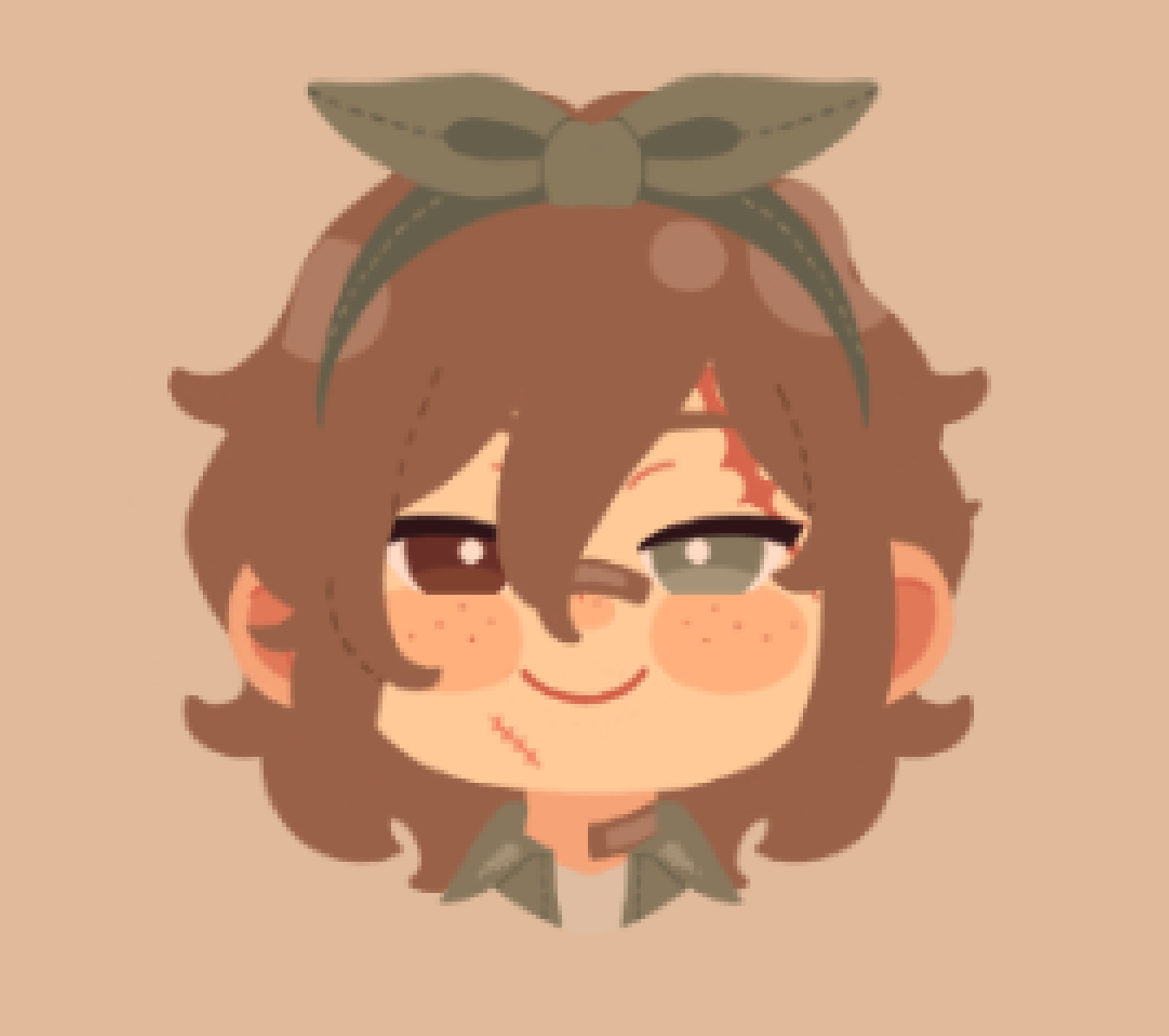 Also, I want to get the details right—does he have a scar on his lower face? If so, is it by the side of his mouth (like the game icon), not there at all, or crossing over his lips? Let me know! ❤️
