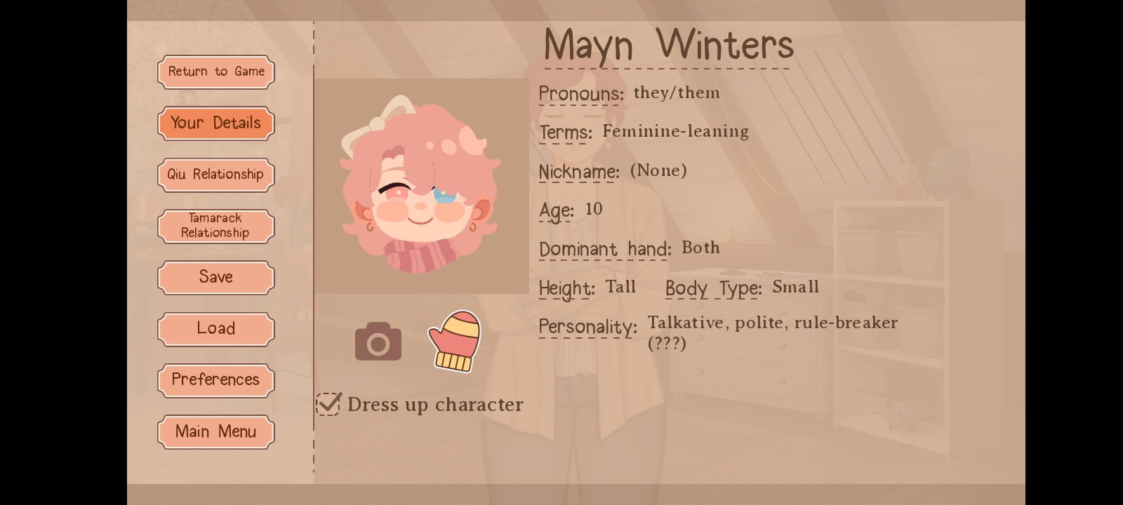I love this game so much! It's been wonderful playing it and I'm looking forward to reading more, thank you for creating such a healing game.